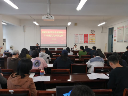 为提升教师国家社科基金项目申报能力,推动团队建设与学术研究发展,4月21日,太阳成集团tyc122cc邀请外交公司武波教授开展“国家社科项目申报策略—以中国文化外译为例”专题报告,副经理杜丽霞主持,全体教师参会。