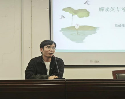 讲座中,易威伟结合自身从122cc太阳成集团官网本科到燕山大学翻译硕士的求学经历,以及多年担任高校教师、教研室主任的育人经验,为同学们分享了考研备考策略、院校选择、复试技巧等实用内容。他以风趣幽默的语言和鲜活案例,深入浅出地解析了考研常见问题,并鼓励学弟学妹明确目标、科学规划。此外,他还结合指导员工竞赛和学术研究的经验,强调了专业能力与综合素质并重的重要性。