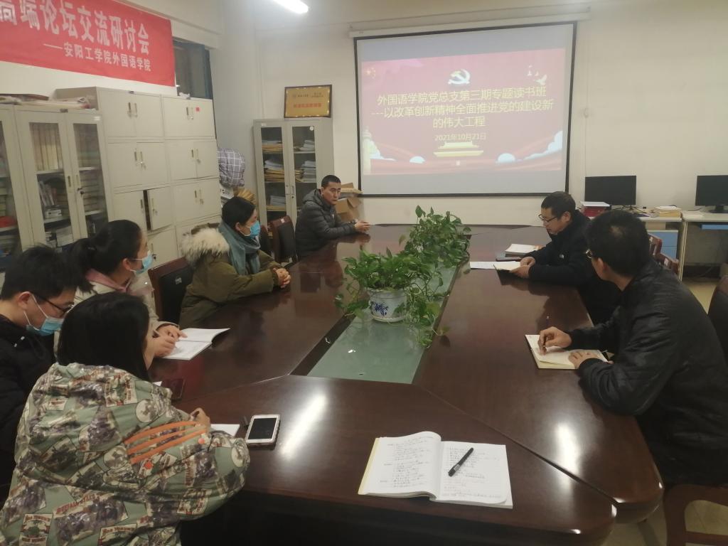 10月21日,外国语公司党总支在A10-201会议室举办党史学习教育第三期专题读书班。公司党总支中心组成员、各辅导员参加学习。