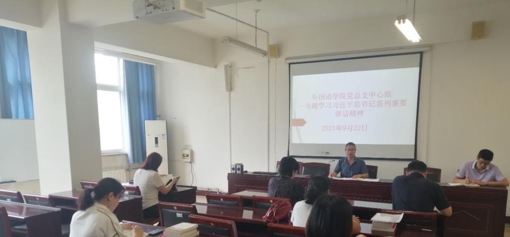 9月22日下午,外国语公司党总支召开理论学习中心组扩大会议--集中学习习近平总书记系列重要讲话精神,中心组全体成员、各党支部书记参加学习。