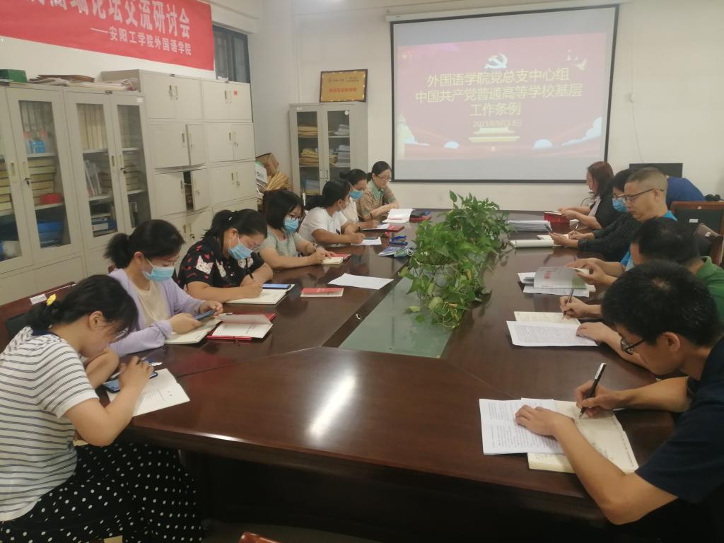 9月13日下午,外国语公司党总支在A10-201会议室召开《中国共产党普通高等公司基层组织工作条例》集体研讨交流会。公司党总支中心组成员、各党支部书记参加会议,党总支书记郭强主持会议。