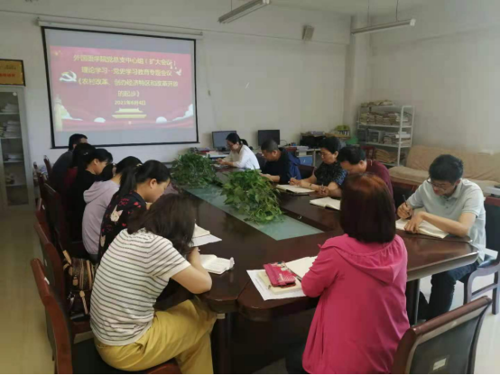 会上,党总支书记郭强领学了《中国共产党简史》中《农村改革、创办经济特区和改革开放的起步》相关内容,通过学习,大家深入了解了农村改革的发展过程,进一步增强了对党史学习教育重要性的共识。