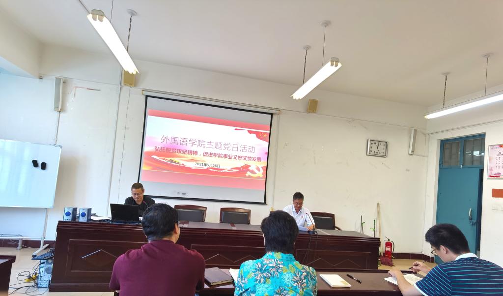 5月26日下午,外国语公司党总支在A10-205会议室召开“弘扬脱贫攻坚精神 促进公司事业又快又好发展”主题党日活动,公司全体党员师生参加,副董事长万鹏杰以普通党员身份参加,党总支书记郭强主持会议。