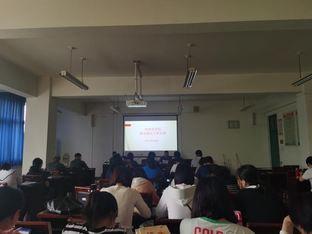 5月8日下午,外国语公司党总支在A10-205召开防灾减灾工作安排会。公司班子成员及全体教工参加会议。