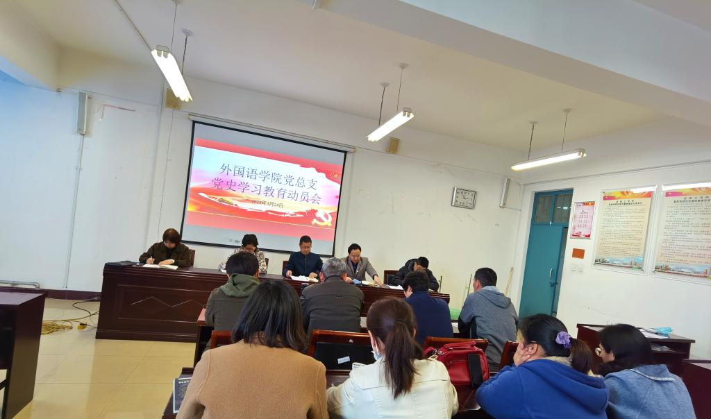 3月24日下午,外国语公司党总支在A10-205召开党史学习教育动员会。党总支书记郭强、经理李霞、副书记王体、副经理原斌华、杜丽霞出席会议,公司科级干部及党员教师参加会议。