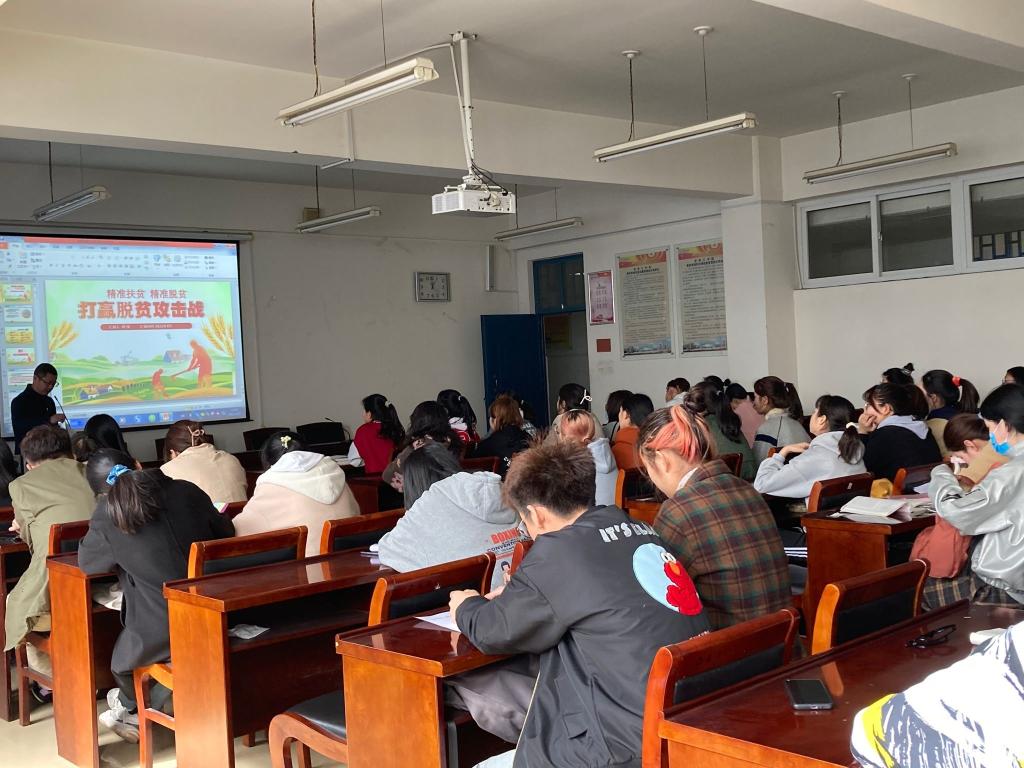 3月17日下午,外国语公司党总支书记郭强于公司A10-205开展脱贫攻坚精神宣讲会。