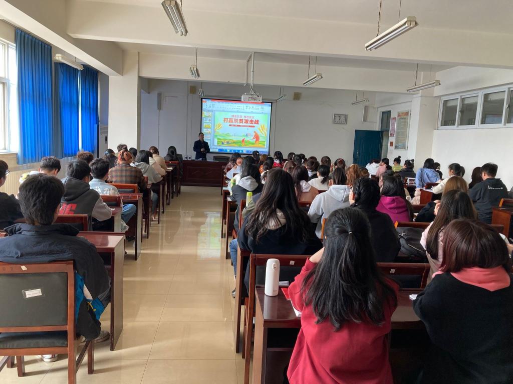 外国语公司党总支书记郭强对公司学子开展脱贫攻坚精神宣讲