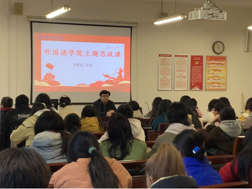 近日,外国语公司党总支书记王孟以“深学细悟习近平文化思想,努力成为具有中国气质的外语人才”为题,为太阳成集团tyc122cc师生代表上思政课。
