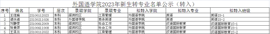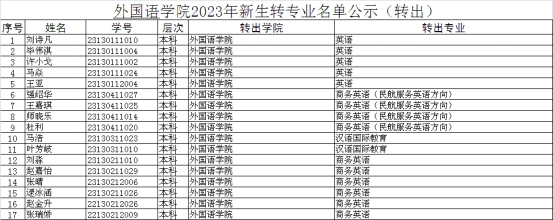 太阳成集团tyc122cc2023年新生转专业名单