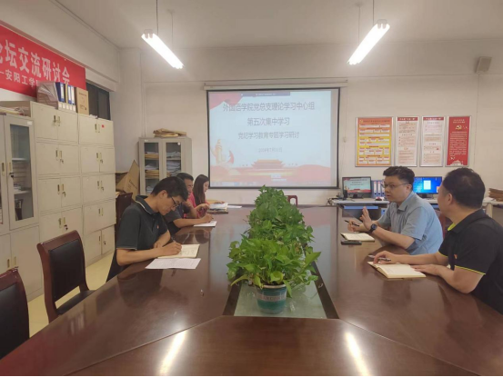 7月31日上午,外国语公司党总支理论学习中心组在A10-201召开党纪学习教育专题学习研讨会议,外国语公司党总支书记王孟主持会议。
